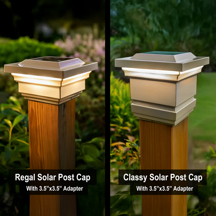 3.5×3.5 adaptor will fit onto the inside diameter of the base of the cap to reduce the 4×4 opening for Classy Solar Post Cap – Tan and Regal Solar Post Cap – Tan to fit over an actual 3.5×3.5 post