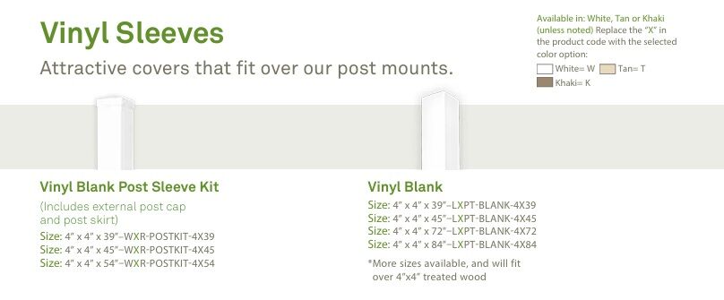 SLEEVE KITS INCLUDE POST CAP OR POST SKIRT