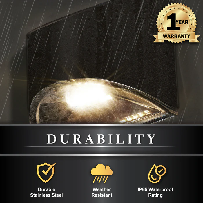 Add a streamlined contemporary design to your landscape with our durable stainless steel deck and wall light with black powder-coat painted finish. The warm-colored light cascades downward to create a soft ambiance. This compact design makes it a perfect accent that can be placed anywhere. An appealing addition to any landscape such as decks, stairways, patios, gardens, and much more.