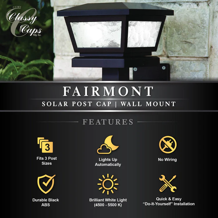 Fairmont Solar Post Cap/ Wall Mount – Black