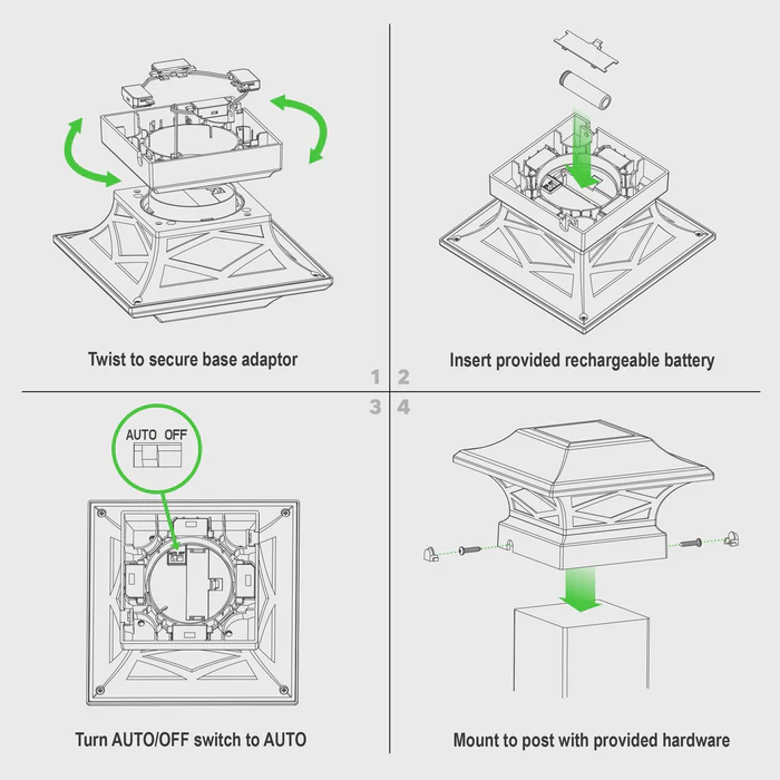 Solar lighting save on energy costs. No need for wiring or timers. Lights turn on automatically at night.