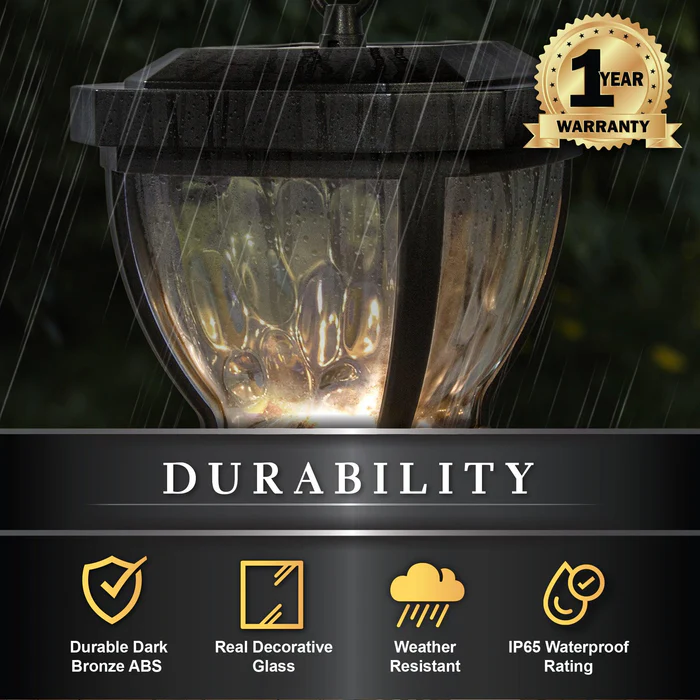 Solar lighting save on energy costs. No need for wiring or timers. Lights turn on automatically at night.