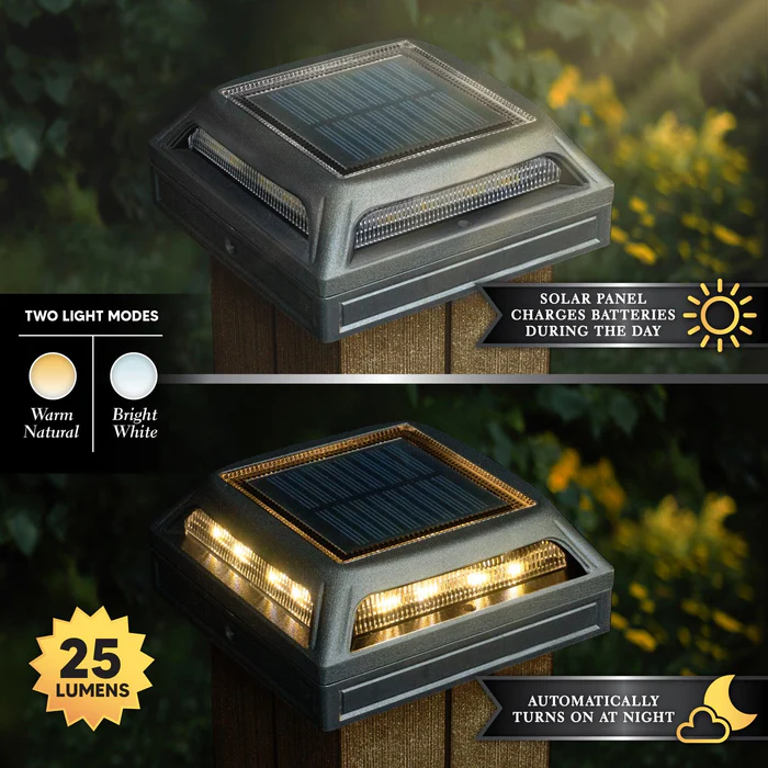 Solar lighting save on energy costs. No need for wiring or timers. Lights turn on automatically at night.