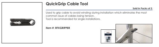 Used to grip cable to avoid winding during installation which eliminates the most common issue of cables losing tension. Tool is recommended for single installations.