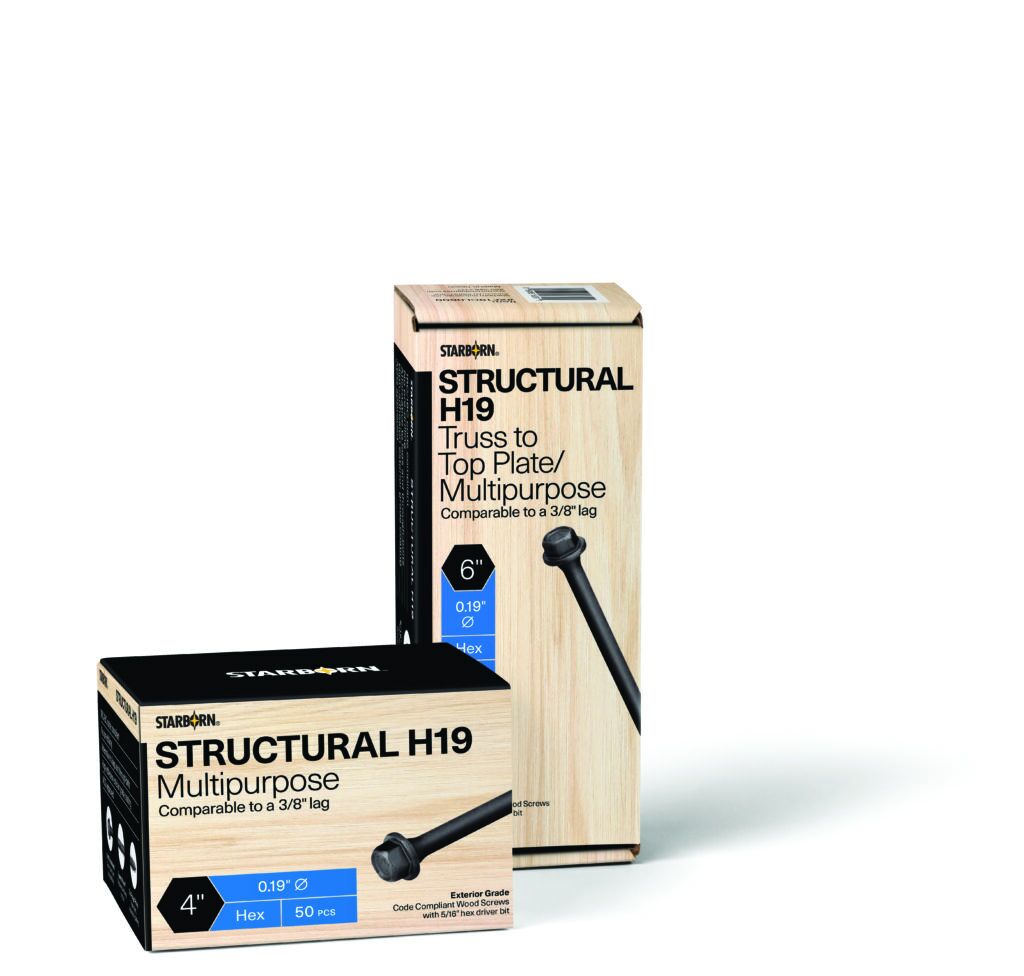 Starborn® Structural H23 screws are specifically designed to attach deck ledgers to rim joists. They are fully tested and code compliant alternatives to traditional lag screws and through-bolts, with no pre-drilling required. Structural H23 screws feature a hex washer head for maximum drivability, a unique Tri-Forge® point for reduced driving torque, and a high-adhesion exterior grade coating. Complete fastening instructions are available in the Deck Ledger to Rim Joist Technical Guide. Structural H23 screws can also be used in a variety of other code compliant wood-to-wood connections.
