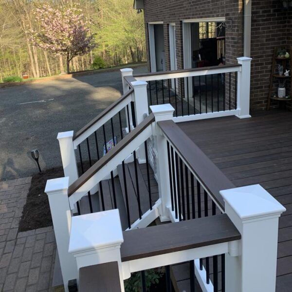 The Warrington vinyl deck board railing features beautiful .75″ round aluminum spindles and premium grade, durable vinyl. The Warrington deck board kit includes hardware so that you can attach a deck board to the top rail for a seamless match.